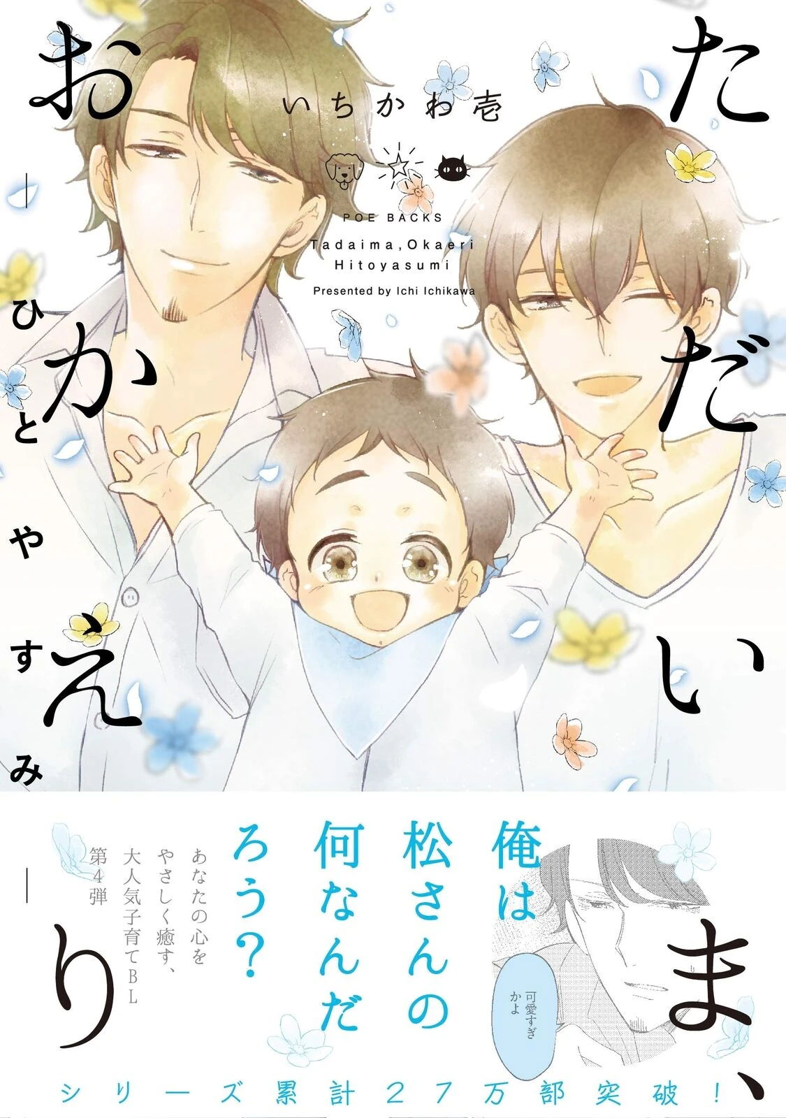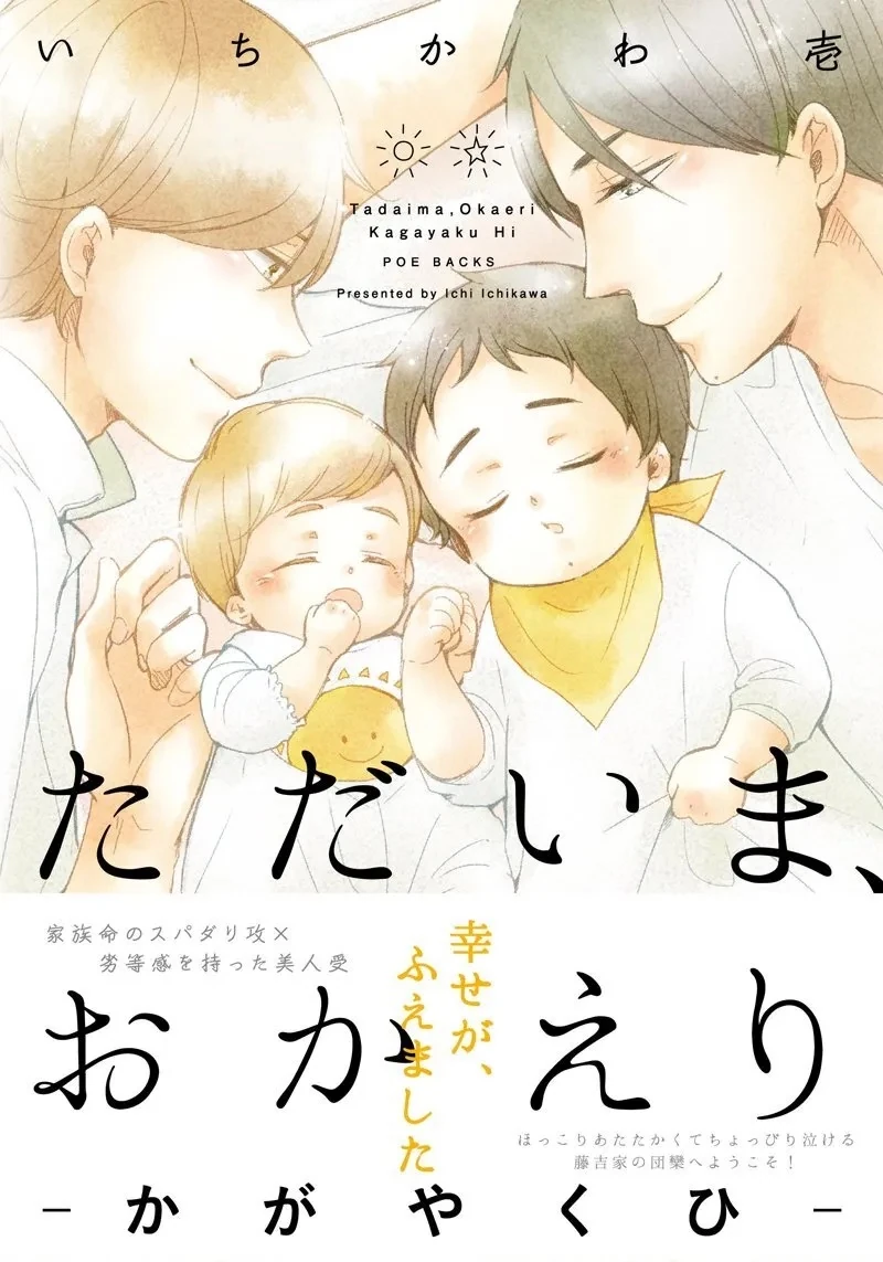 Tadaima, Okaeri, also titled as Welcome Home, is an ongoing manga written and illustrated by Ichikawa Ichi. First released in 2015, it has been serialized in Omegaverse Project and published in fusion. The story is licensed in English. So far, five tankōbon volumes have been released.